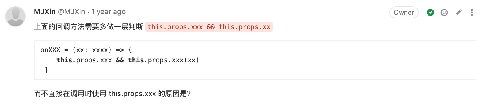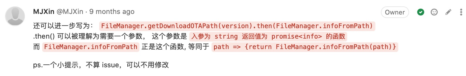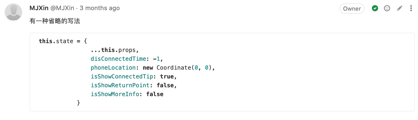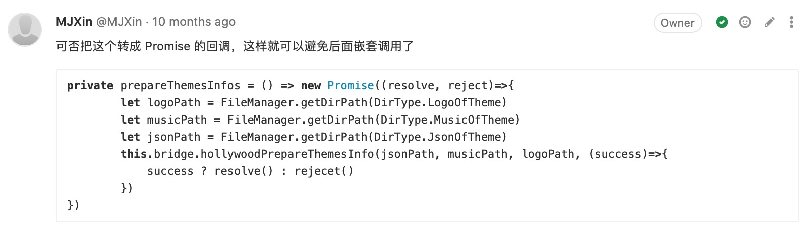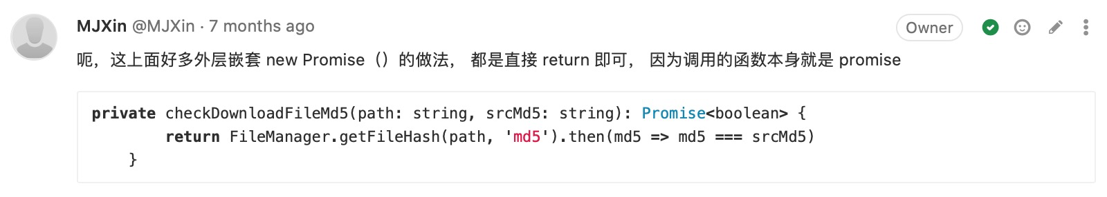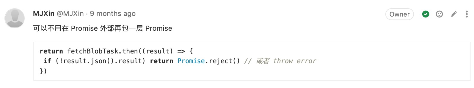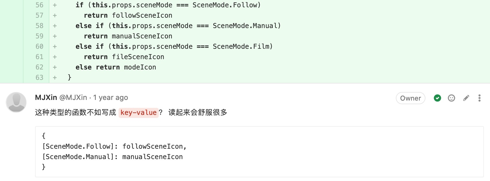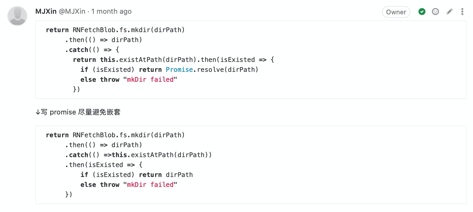 附录-CodeReview:(我关注的)写法有优化空间 48 图 工程专题 CodeReview 附录 Jul 05, 2020 0 views 避免多层级嵌套及善用 Promise 用官方提倡的方式简化代码 用 Key-Value 代替 Switch-Case 不留无用代码 PREVIOUS附录-CodeReview:(我关注的)提高代码可维护性, 代码统一性 23 图NEXT附录-CodeReview:(我关注的)码不达意 7 图