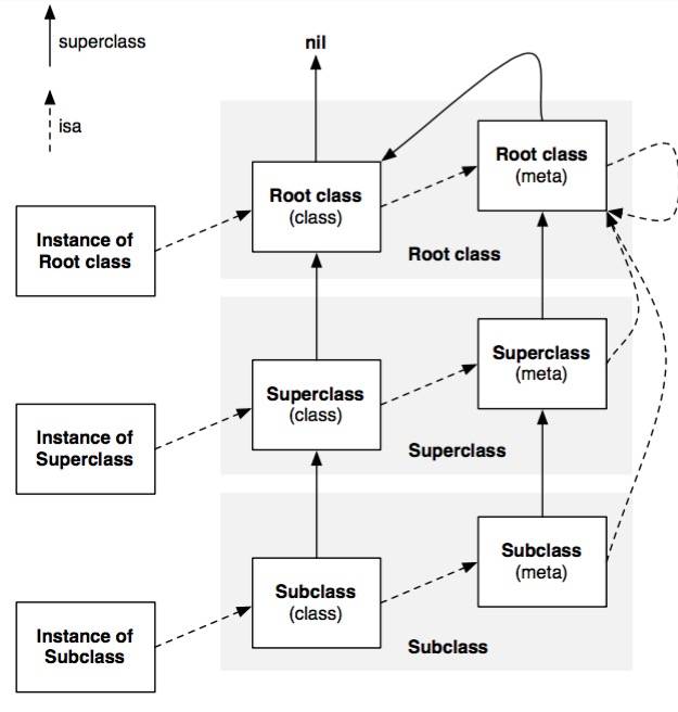 对于 “对象” , “类”, “元类” 间的关系, 见 二. runtime 怎么实现封装 | runtime 的基础数据结构